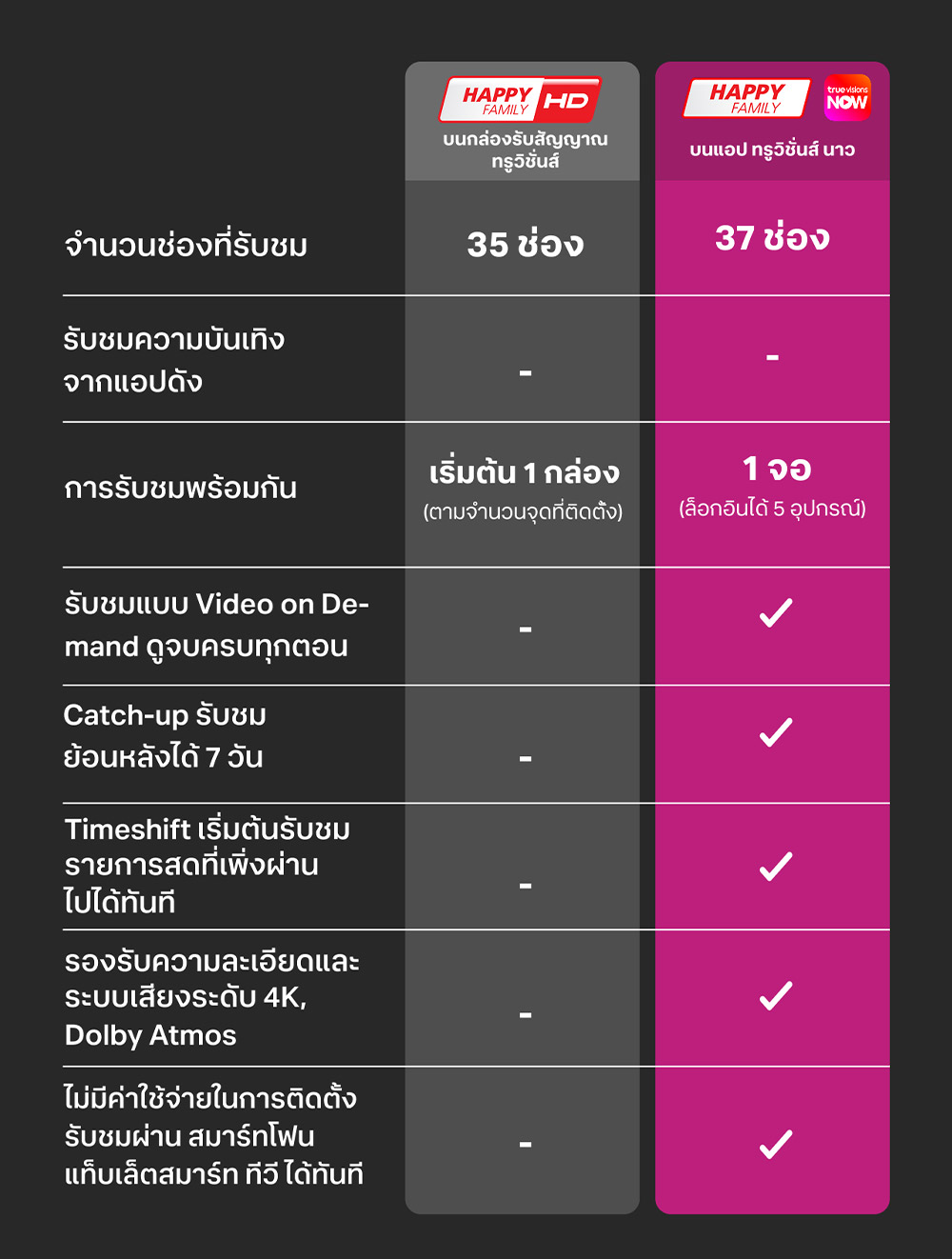 เปรียบเทียบระหว่างแพ็กเดิมกับบน TrueVisions NOW