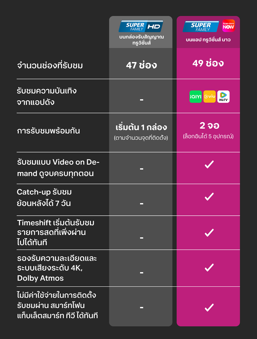 เปรียบเทียบระหว่างแพ็กเดิมกับบน TrueVisions NOW